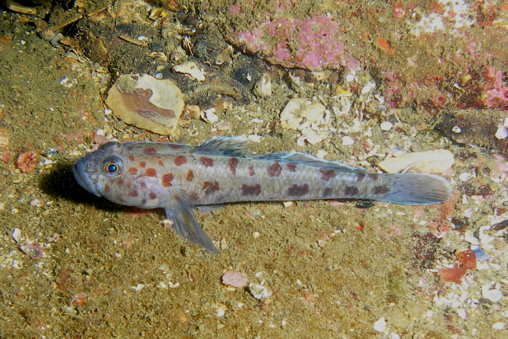 Algo parecido ocurrió con Thorogobius ephippiatus, el gobio leopardo, un precioso lorcho no tan frecuente en nuestras aguas, y mucho más difícil de ver, pues ocupa grietas o pequeñas cuevas oscuras. En este caso, la especie simplemente no estaba citada; aunque mucha gente antes lo habría visto, nadie se había parado a confirmar su presencia. Esta especie se incluye en una artículo que está a punto de publicarse en una de las más prestigiosas revistas sobre taxonomia.