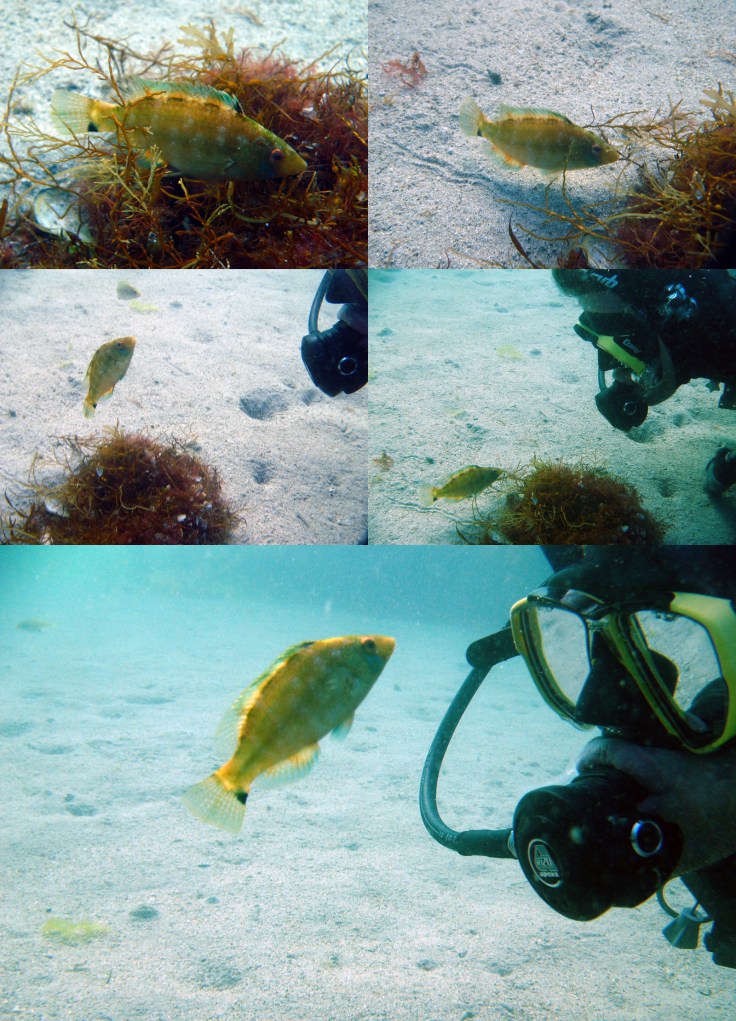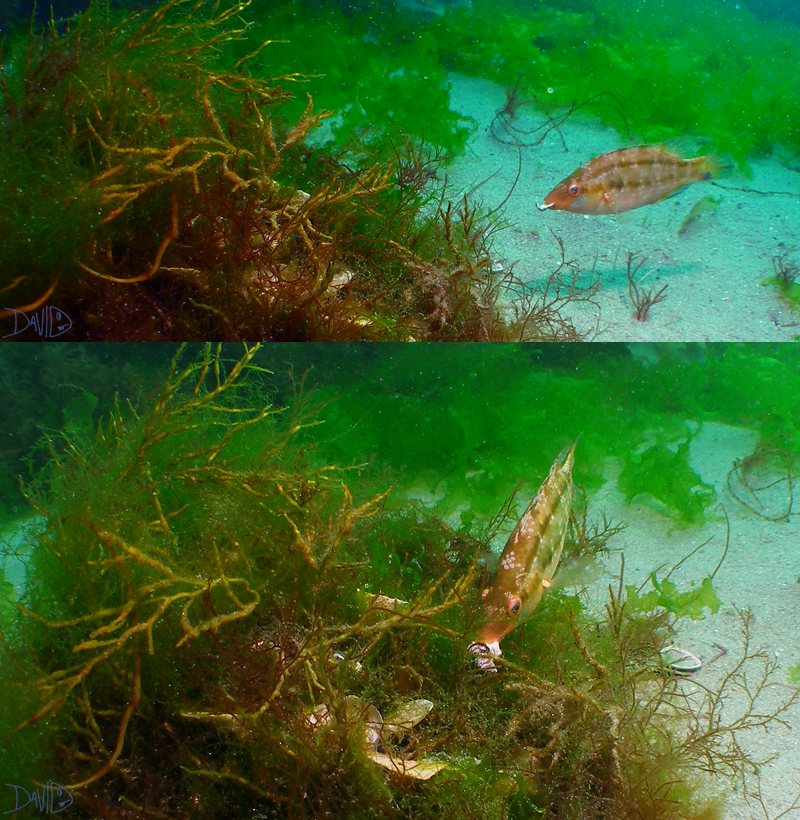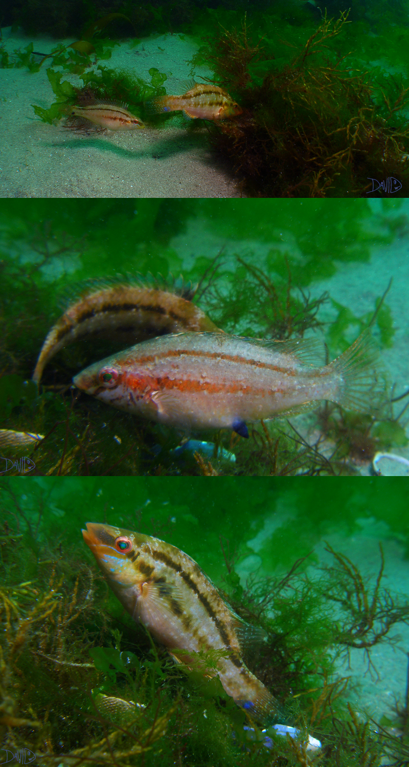 Hoy presentamos el caso de uno de los peces más comunes de nuestras costas, pero el ejemplo es válido para muchas otras especies. En este caso hablamos de un serrán, Symphodus cinereus, que vive en zonas mixtas de arena y roca a poca profundidad. En esta especie, la construcción del nido empieza en invierno y para ello se necesitan algas, conchas, arena y mucho trabajo.