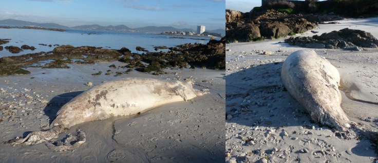 Aparece varada un rorcual aliblanco (Balaenoptera acutorostrata) en la playa (ver noticia), previsiblemente arrastrado por los temporales de las últimas semanas desde aguas más oceánicas, donde habría muerto unas semanas antes. ¿La causa? Se desconoce.