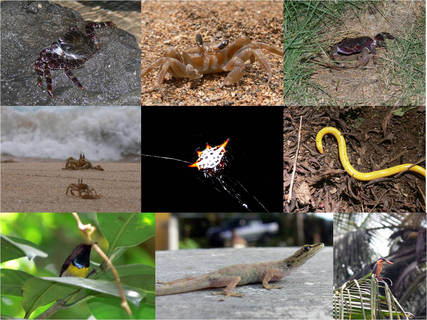 La fauna es espectacular, con un gran número de endemismos. Están catalogadas unas 29 especies endémicas de aves (ver foto abajo de Nectarinia newtonii y Alcedo cristata thomensis). Entre los escasos mamíferos indígenas hay tres especies endémicas: la musaraña de Santo Tomé (Crocidura thomensis) y dos murciélagos, Myonycteris brachycephala, el único mamífero con fórmula dental asimétrica, y Chaerephon tomensis, descubierto a finales del siglo XX. De las 24 especies de reptiles presentes, sólo 6 no son endémicas (resaltar el espectacular caecílido Schistometopum thomense, ver foto), y es posible que hayan sido introducidas por el hombre. Además, hay un gran número de endemismos en varios grupos de invertebrados, como los lepidópteros y los gasterópodos terrestres. Sin duda podemos considerarla con un punto caliente de biodiversidad en el planeta.