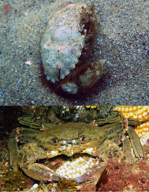 - Crustáceos: Maja squinado (centolla), Necora puber (nécora), Galathea strigosa, Macropodia rostrata (araña de mar), Inachus sp. (araña de mar), Pagurus sp. (ermitaño), Atelecyclus undecimdentatus.