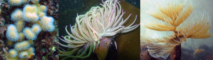 - Cnidarios: Leptogorgia sp. (gorgonia), Alcyonium digitatum, Anemonia viridis(anémona verde), Anemonactis mazeli (anémona arlequín), Corynactis viridis (anémona joya), Actinia fragacea.