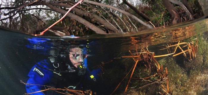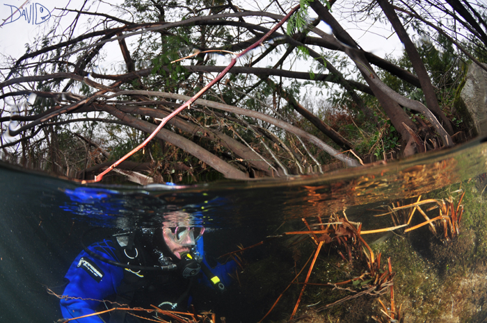 Imágenes subacuáticas del río Lérez antes de su paso por Pontevedra y la zona afectada por el mejillón invasor.