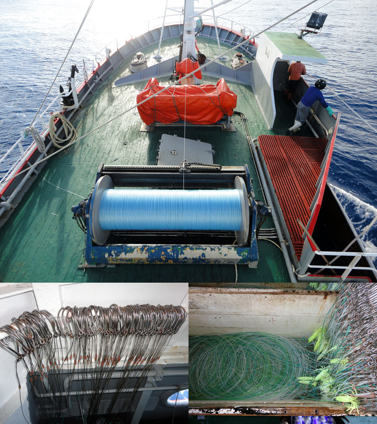 Estos cetáceos, además, han adquirido en los últimos años comportamientos aprendidos que les permiten aprovechar nuevas formas de obtener el alimento, explotando oportunidades brindadas por el hombre. Este es el caso de la pesca de palangre. En la literatura científica se ha descrito esta curiosa interacción entre orcas y pesca en varias ocasiones. Esta relación entre cetáceos y pescadores se genera habitualmente con buques palangreros de superficie (ver imagen más abajo). Tenemos ejemplos notables de esta interacción a lo largo de toda la geografía mundial, como los encontrados en aguas del sureste de Brasil (Dalla Rosa and Secchi 2007), en Nueva Zelanda (Visser 2000), y en el Mar de Bering (Yano and Dahlheim 1995). No solo el palangre de superficie se ve afectado, también se han descrito problemas con las orcas en la pesquería de palangre de fondo del bacalao de profundidad, Dissostichus eleginoides, en aguas del Atlántico Sur, Georgia del Sur (Purves et al. 2004). En este último caso había otro cetáceo involucrado como el cachalote, Physeter macrocephalus. Estas dos especies, orcas y cachalotes, también están involucradas en otras importantes pesquerías de palangre como las que se desarrollan en las islas Malvinas (Nolan et al. 2000).