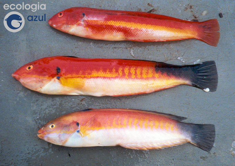 Más comunes son algunos lábridos (Familia Labridae) como la julia o doncella Coris julis y el gallano Labrus mixtus. Ambas especies son hermafroditas protogínicas, la mayoría de ellos nacen siendo hembras y a lo largo de su vida algunos ejemplares se transforman en machos. Los dos sexos se pueden diferenciar externamente por su coloración, lo que se denomina dimorfismo sexual o dicromatismo sexual.